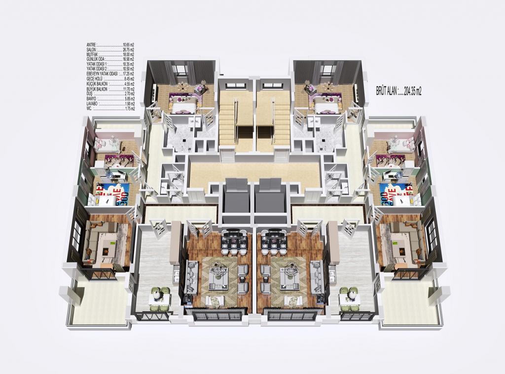 4+1 Daireler Brüt 204 m